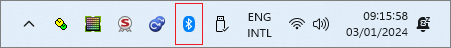 To start the pairing process, locate the Bluetooth icon in the Windows System Tray. The Windows System Tray is located at the bottom right of your screen (when your taskbar is at the bottom of the screen). Click the Bluetooth icon, and from the popup menu that appears, select the 'Add a Bluetooth Device' option.